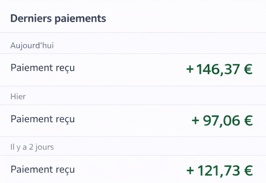 Après avoir perdu plusieurs centaines d'euros dans des formations et des investissements en ligne, je suis tombé sur "le pack Abondance". Je me suis dit que ça valait le coup d’essayer, mais je ne m'attendais pas à ce que ce soit aussi simple et rapide. Dès le premier mois, j'ai pris plus de 1000€, et maintenant je suis à 2 500€ mensuels. Ce n'est pas encore une fortune, mais c'est un revenu qui me permet de respirer et d'avancer à mon rythme.