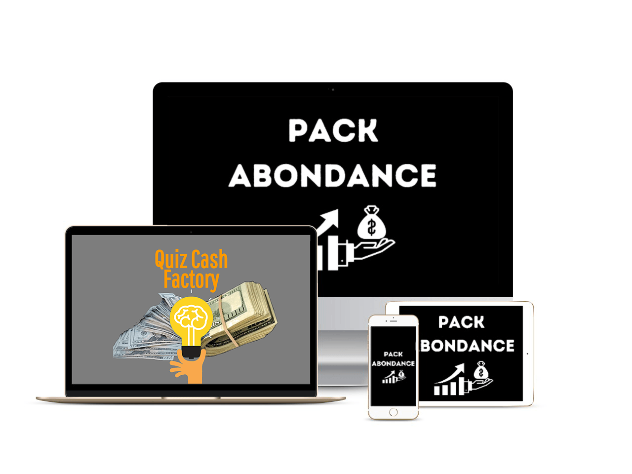 Vous pouvez obtenir le Pack Abondance (et un accès GRATUIT à la formation la formation Quiz Cash Factory) pour seulement :